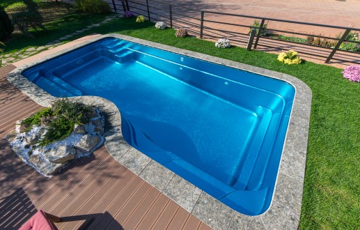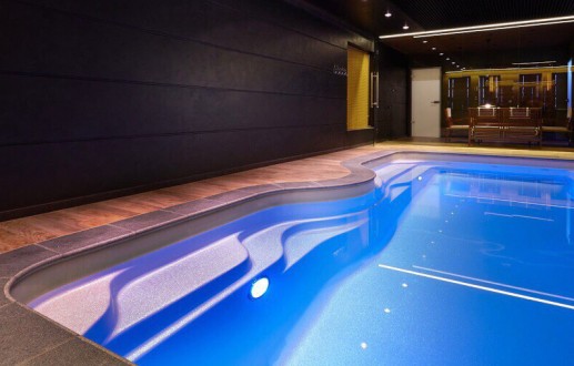Просторная плавательная зона, роскошный подводный диван и уникальные условия интеграции в ландшафт. Четкие геометрические формы с мягкими скруглениями создают элегантный современный силуэт. А специальная выемка вдоль борта – возможность для декоративных посадок (карликовый можжевельник, самшит, лаванда) или каскадного водопада.