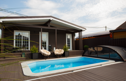 для владельцев небольшого участка, компактные размеры позволяют установить бассейн даже на небольшом участке.
