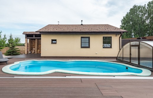 Просторная чаша бассейна оснащена удобными подводными диванами по бокам — вы сможете наслаждаться отдыхом, не покидая воды. А большая плавательная зона идеально подходит для водных игр и спортивного плавания — например, для семейного волейбола прямо в воде.