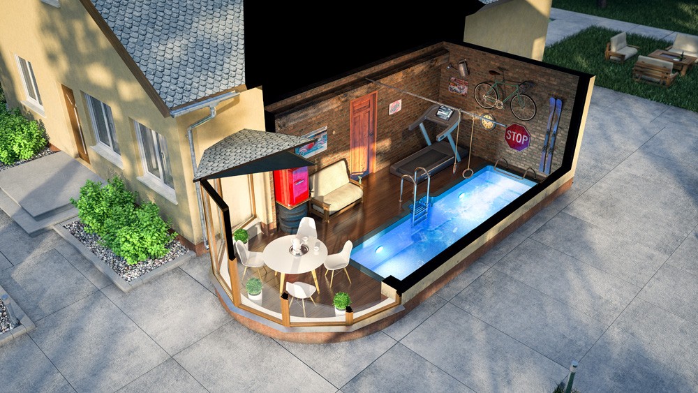 По размерам SwimTrack легко впишется в пространство стандартного гаража или террасы — достаточно просто избавиться от ненужного хлама, чтобы превратить квадратные метры в современный спортивный комплекс с аква-зоной.