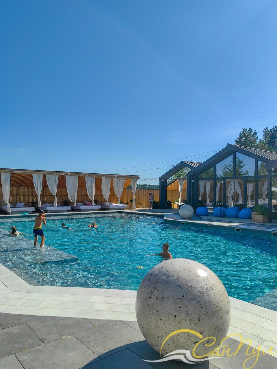 В 2024 году компания СанПул провела работы по отделке бетонной чаши сложной формы.