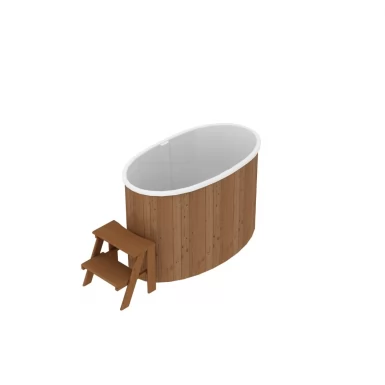 - Внешняя обшивка купели из массива лиственницы, с возможностью выбора внешнего декоративно-защитного покрытия